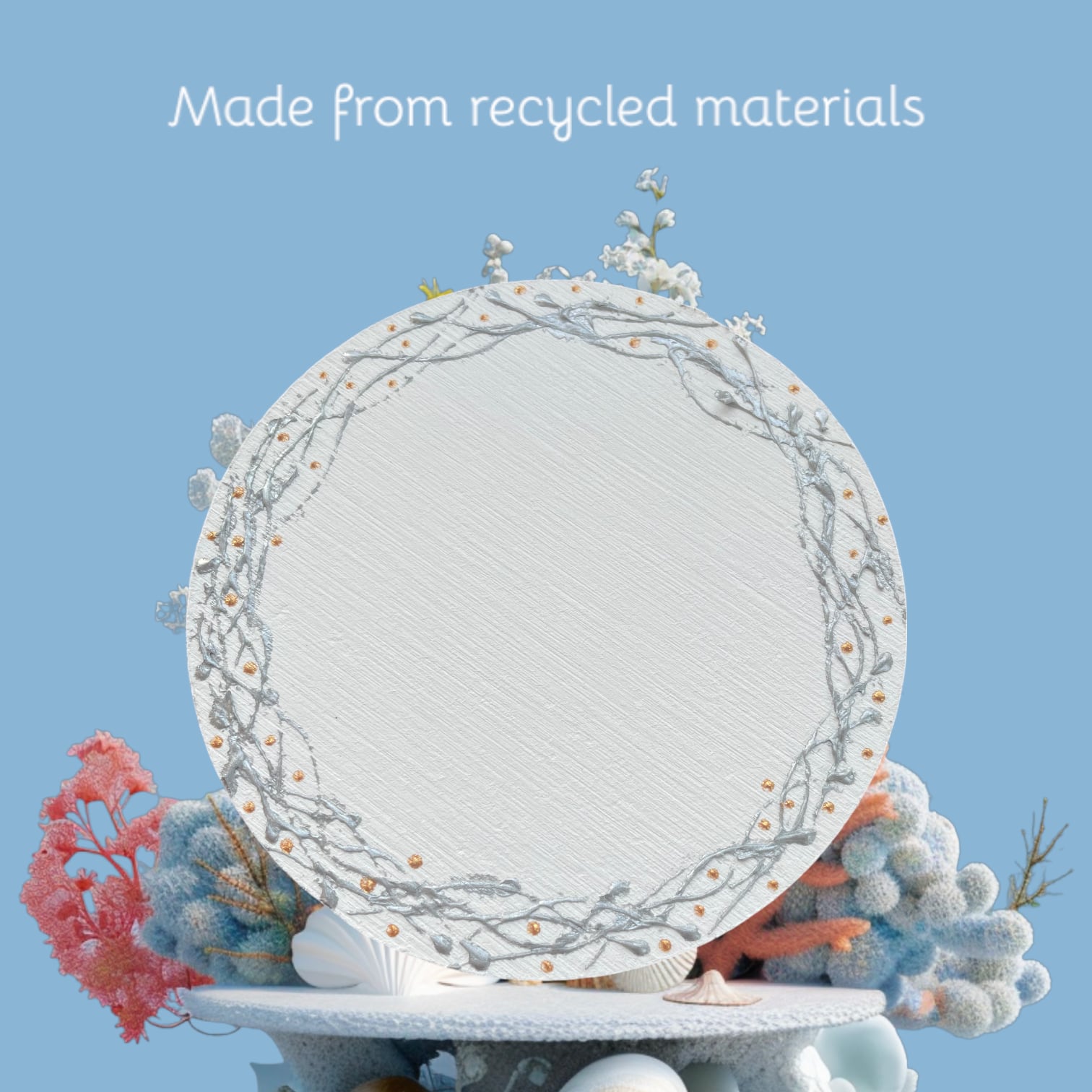 白い珪藻土をキャンバスに見立て、一つひとつ手描きで仕上げた世界に一点だけの原画作品です。シルバーとゴールドの立体感のあるラインで、繊細な植物のリースを描きました。