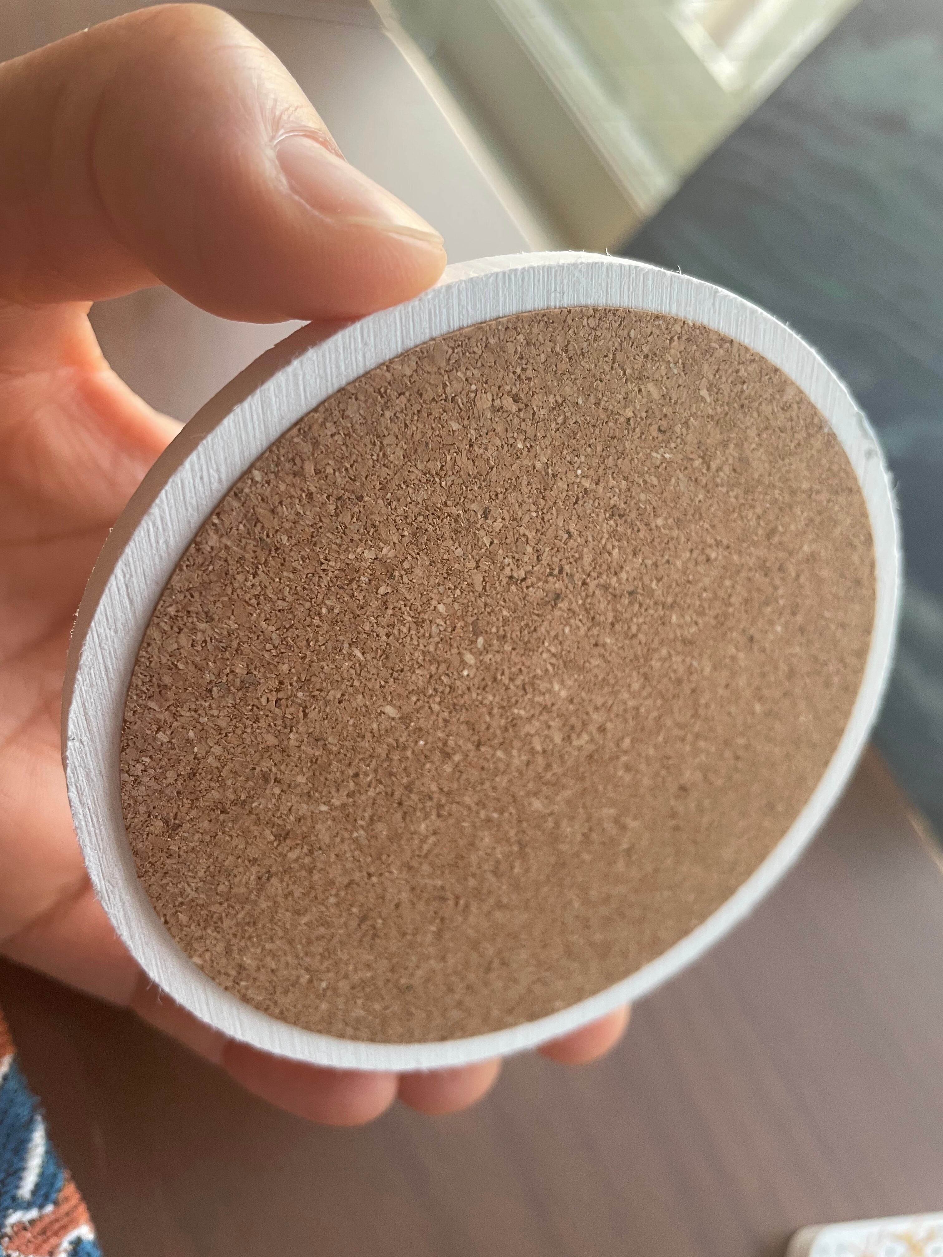 材質:珪藻土、コルク、アクリル画材(ペベオ:陶器用水性アクリル絵の具)