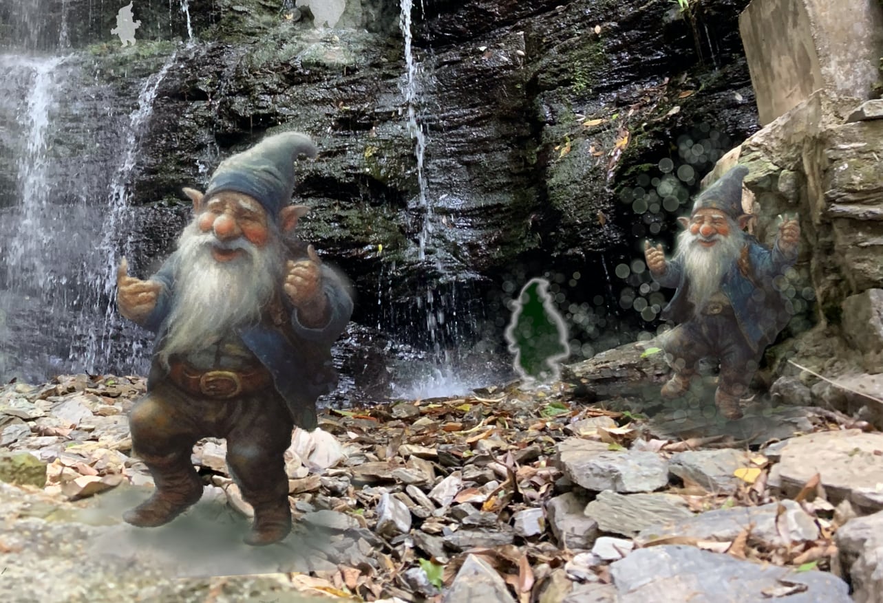 This is a one-of-a-kind scene blending the solemn atmosphere of a cherished waterfall in Nobeoka—where I visited annually for New Year's prayers—with the free-spirited creativity of AI art I adore. A dwarf co-created with AI.